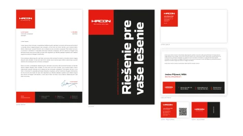 Pre spoločnosť HACON sme navrhli vizuálnu identitu, ktorá reflektuje ich zameranie na konštrukčné riešenie pre prácu vo výškach. Celý koncept stojí na silnom červeno-čiernom kontraste, ktorý prirodzene evokuje bezpečnosť, dôraz a technickú precíznosť. Výrazná farebnosť zároveň podporuje okamžitú rozpoznateľnosť značky.