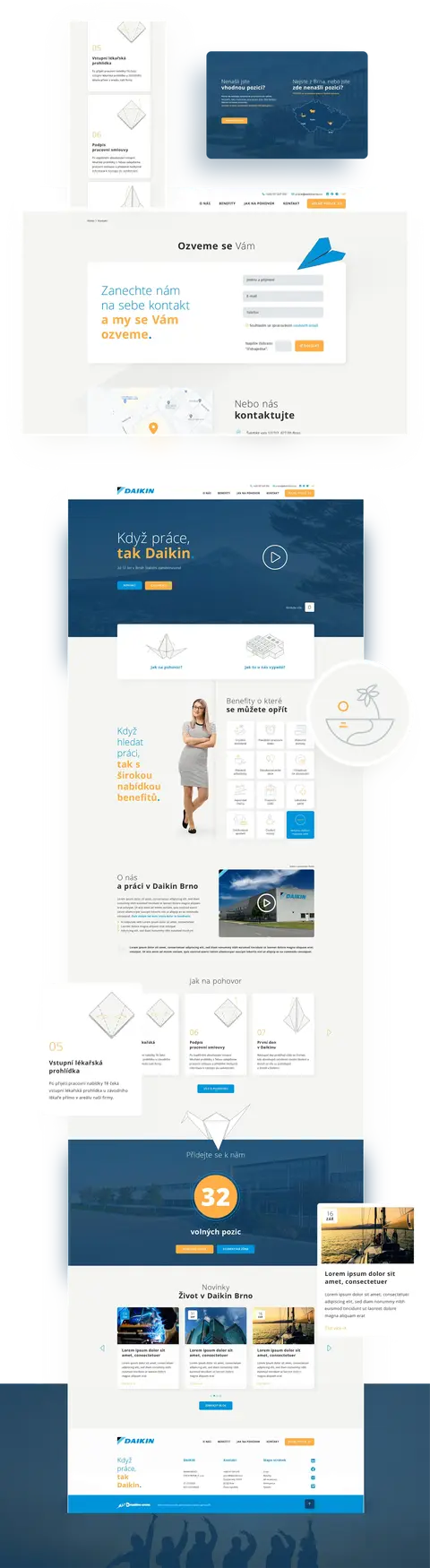 Náborový web Daikin Brno kladie dôraz na prehľadnosť a atraktívne spracovanie, aby uchádzačom o prácu poskytol všetky dôležité informácie na jednom mieste. Jasná štruktúra, autentické vizuály a intuitívna navigácia umožňujú jednoduchú orientáciu a rýchly prístup k voľným pracovným pozíciám, benefitom i detailom o výberovom konaní.