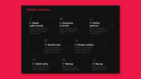Navrhli sme kariérny web, ktorý nielen oslovuje nových uchádzačov, ale zároveň ich sprevádza celým procesom, od prvého kontaktu až po prijatie do zamestnania. Štruktúra aj dizajn rešpektujú vizuálnu identitu firemného webu a tvoria s ňou harmonický celok. Chcete pre svoju firmu efektívny kariérny web, ktorý osloví tých správnych ľudí? Ozvite sa, radi ho pre vás vytvoríme.