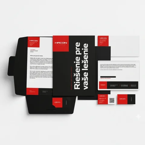 Pre spoločnosť HACON sme navrhli vizuálnu identitu, ktorá reflektuje ich zameranie na konštrukčné riešenie pre prácu vo výškach. Celý koncept stojí na silnom červeno-čiernom kontraste, ktorý prirodzene evokuje bezpečnosť, dôraz a technickú precíznosť. Výrazná farebnosť zároveň podporuje okamžitú rozpoznateľnosť značky.