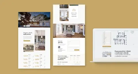 Atmosféra tejto honosnej klasicistickej vily s rozľahlou romantickou záhradou, navrhnutej v roku 1930 architektom Čestmírom Vavroušom, inšpiruje, prekvapuje a okamžite rozmaznáva svojich obyvateľov i návštevníkov. Na tejto myšlienke je založená aj štruktúra a vizuálny charakter webovej stránky, ktorú sme pre projekt vytvorili. Webová stránka sprostredkúva historické dedičstvo prvej republiky v modernej digitálnej podobe a zdôrazňuje pokoj, eleganciu a exkluzivitu, na ktorých je založený celý koncept bývania.